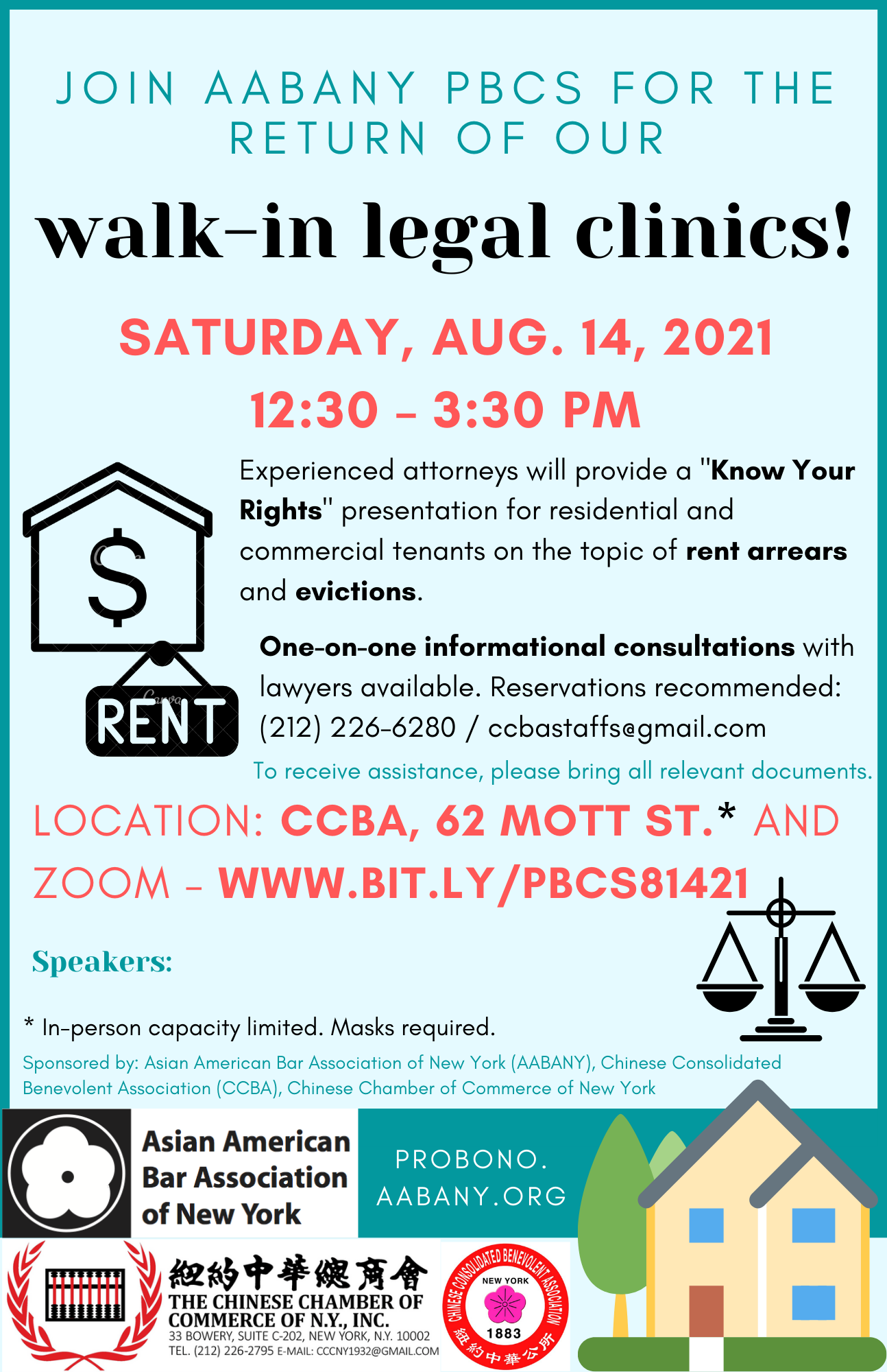 Join AABANY PBCS for the return of our Walk-in Legal Clinics!
